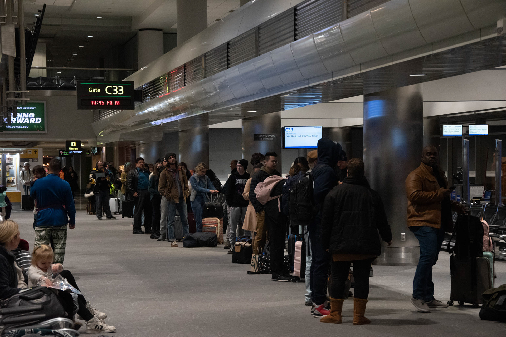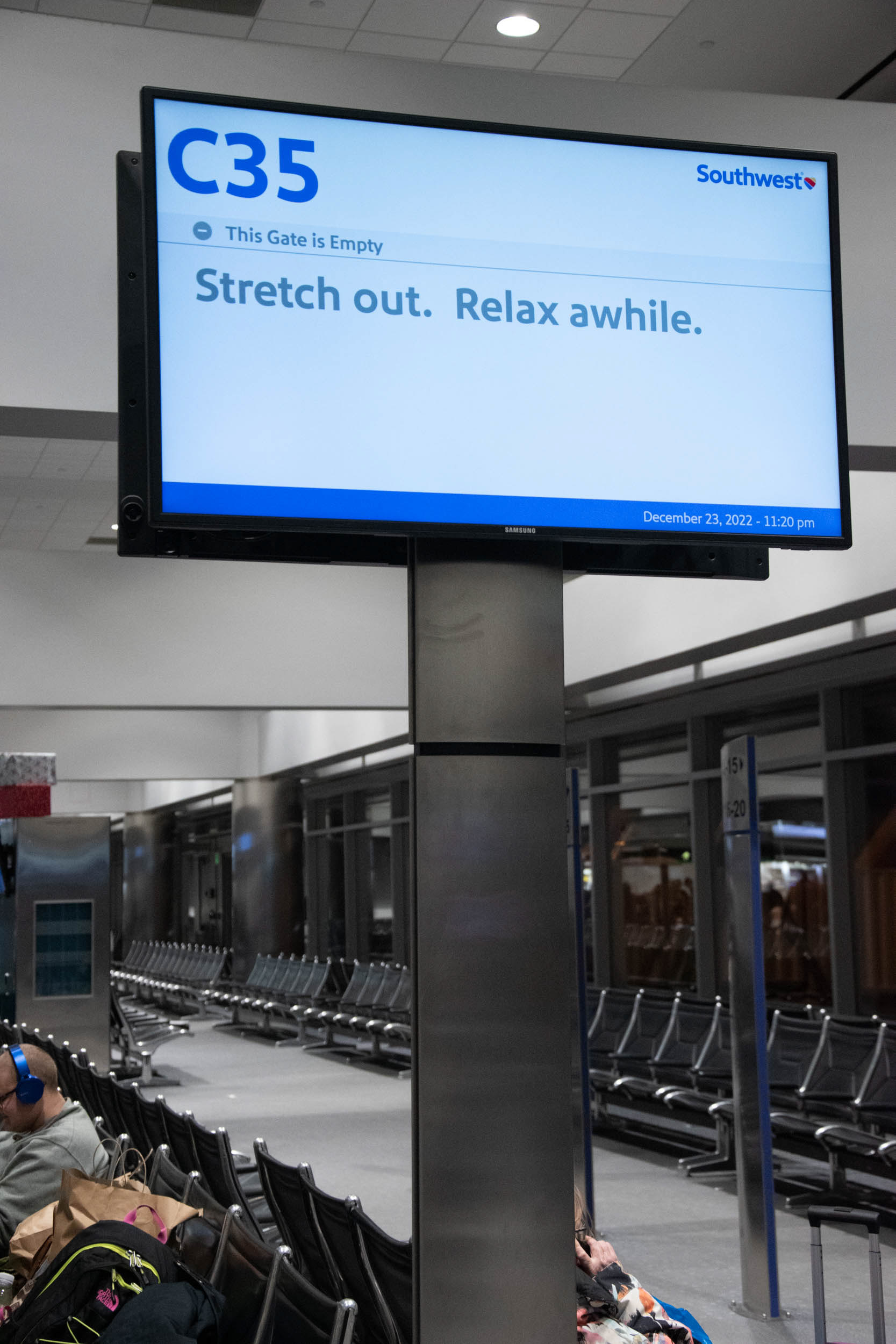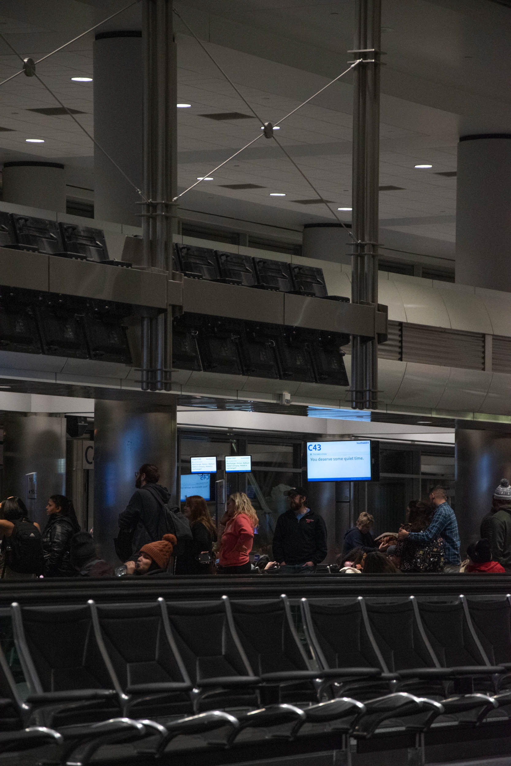 In late December of 2022, me and my family were stuck in the Denver, CO airport while all of the Southwest flights were delayed or cancelled. With a camera and nothing to do but wait for 9 hours I decided to document the situation. We ended up having to leave and reschedule our flight for two days later, stuck in Colorado for Christmas.